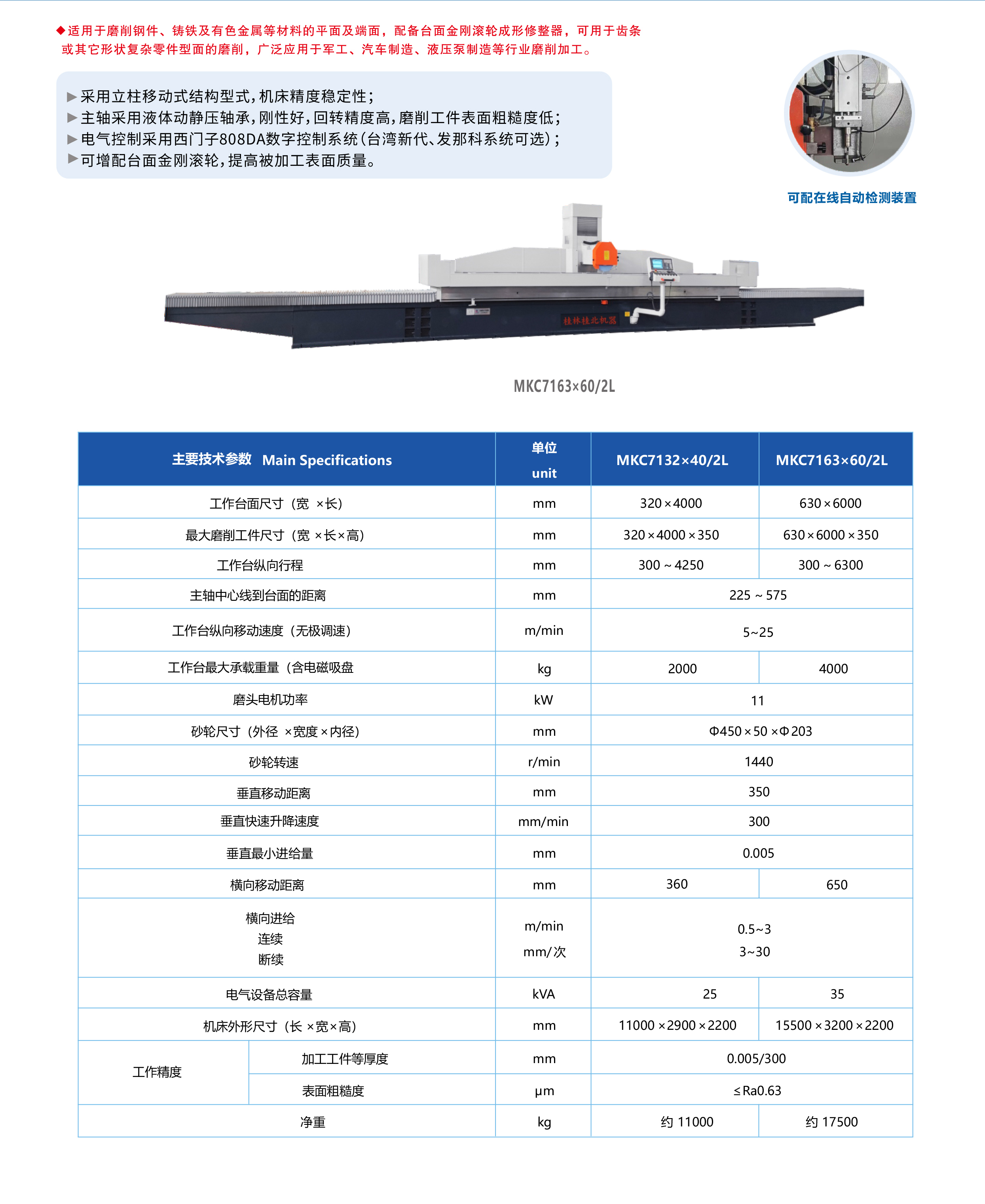數(shù)控臥軸矩臺成型平面磨床(立柱移動式)MCK7163×60/2L