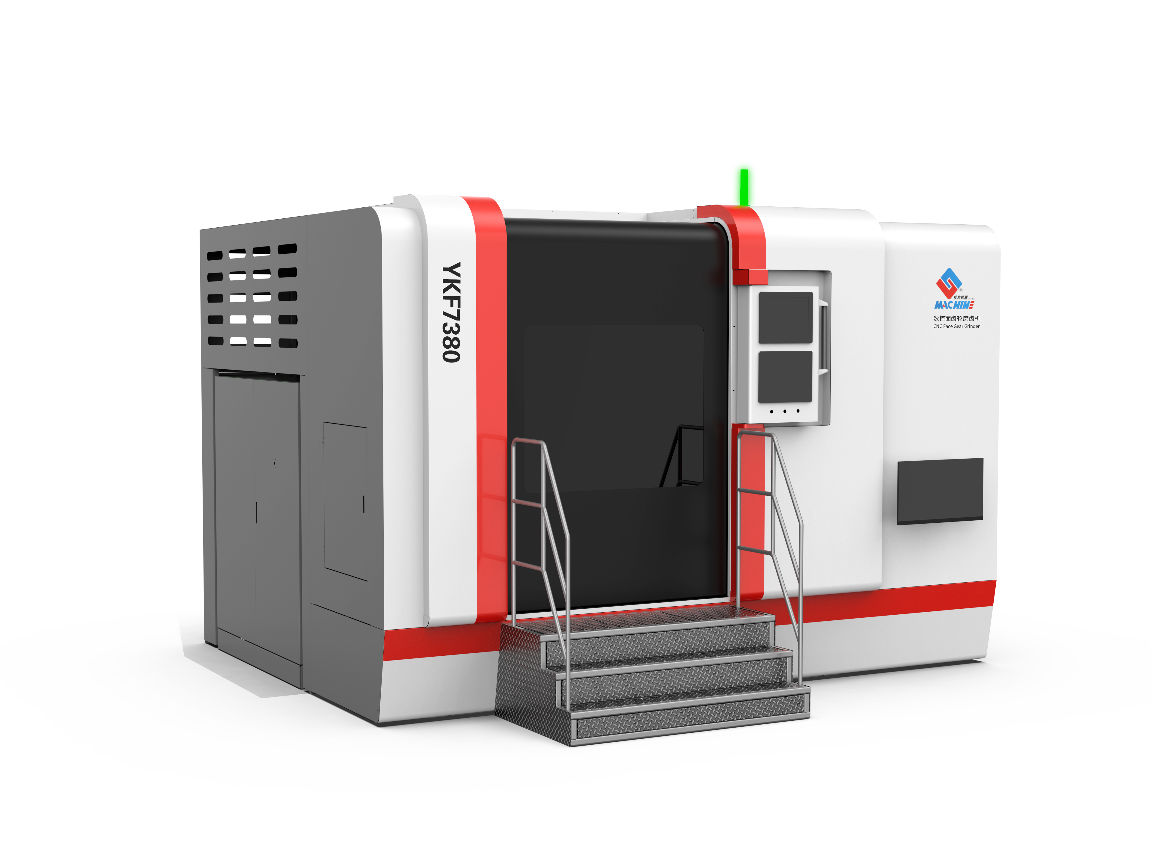 “全尺寸大空間高精度數(shù)控面齒輪磨齒機(jī)(型號:YKF7380)”是桂林桂北機(jī)器有限責(zé)任公司針對面齒輪加工難題,聯(lián)合北京航空航天大學(xué)成功研制的國內(nèi)首臺八軸五聯(lián)動數(shù)控面齒輪廣域磨削專用機(jī)床。該機(jī)床具備全尺寸設(shè)計、大空間結(jié)構(gòu)和高精度加工的特點(diǎn),工件可加工尺寸范圍大,加工直徑范圍Ф50~850mm,模數(shù)1~12,適用于航空、兵器、工程機(jī)械、高端機(jī)床等多領(lǐng)域,相關(guān)技術(shù)達(dá)到國際先進(jìn)水平,其中大展成加工空間和大接觸區(qū)面積等部分技術(shù)指標(biāo)達(dá)到國際領(lǐng)先水平,填補(bǔ)了國內(nèi)技術(shù)空白,促進(jìn)了國產(chǎn)面齒輪產(chǎn)品質(zhì)量躍升和產(chǎn)業(yè)鏈體系自主可控。