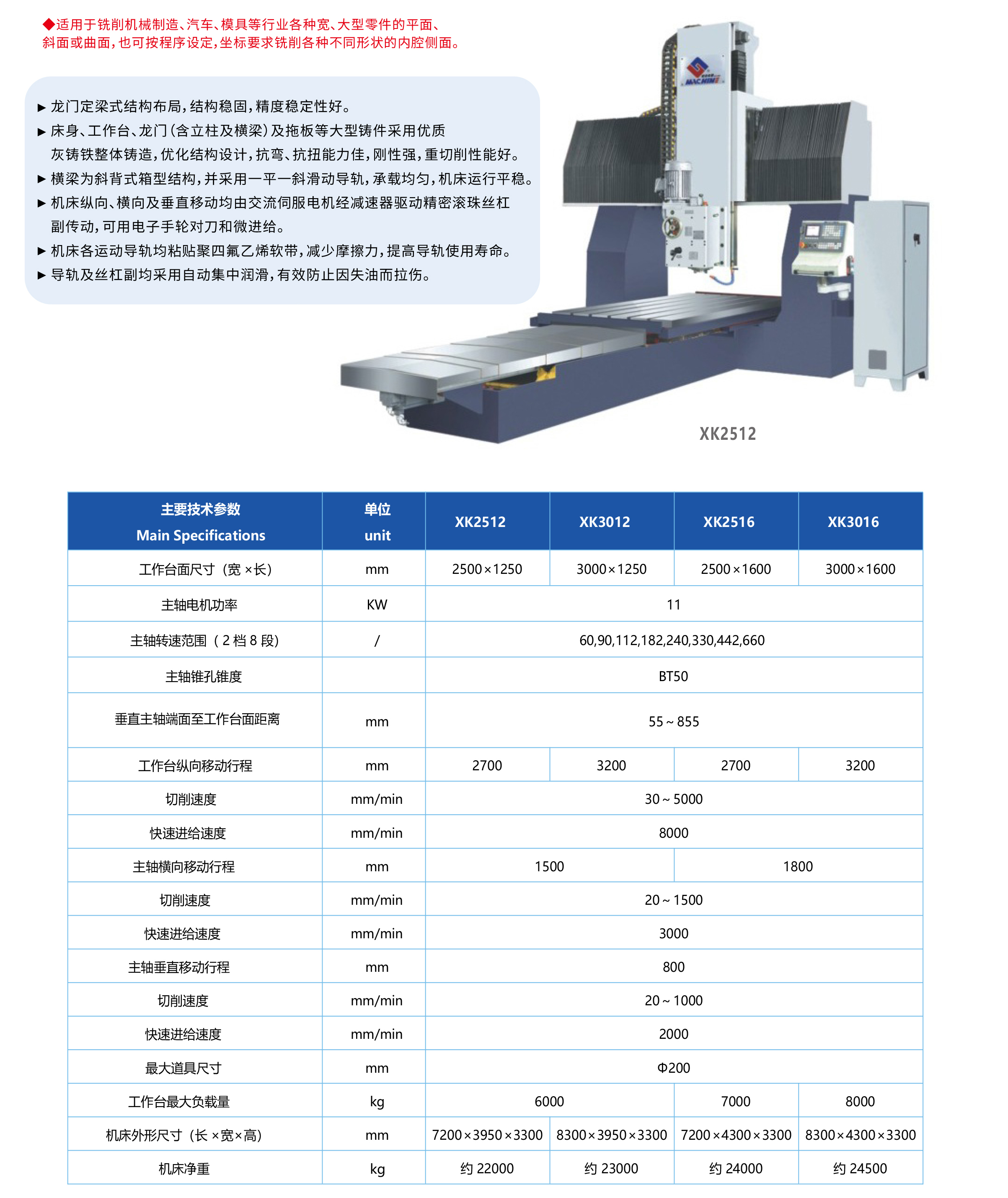 定梁式龍門數(shù)控銑床XK2512